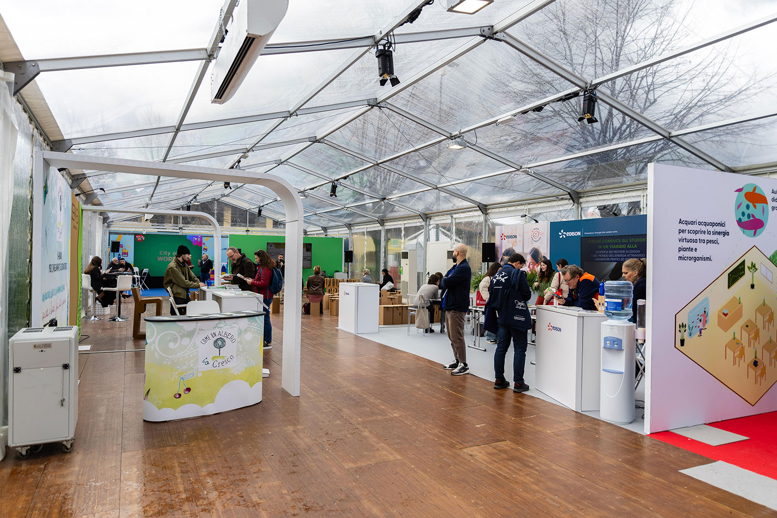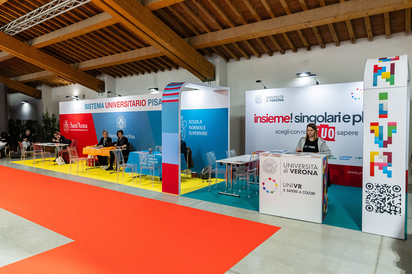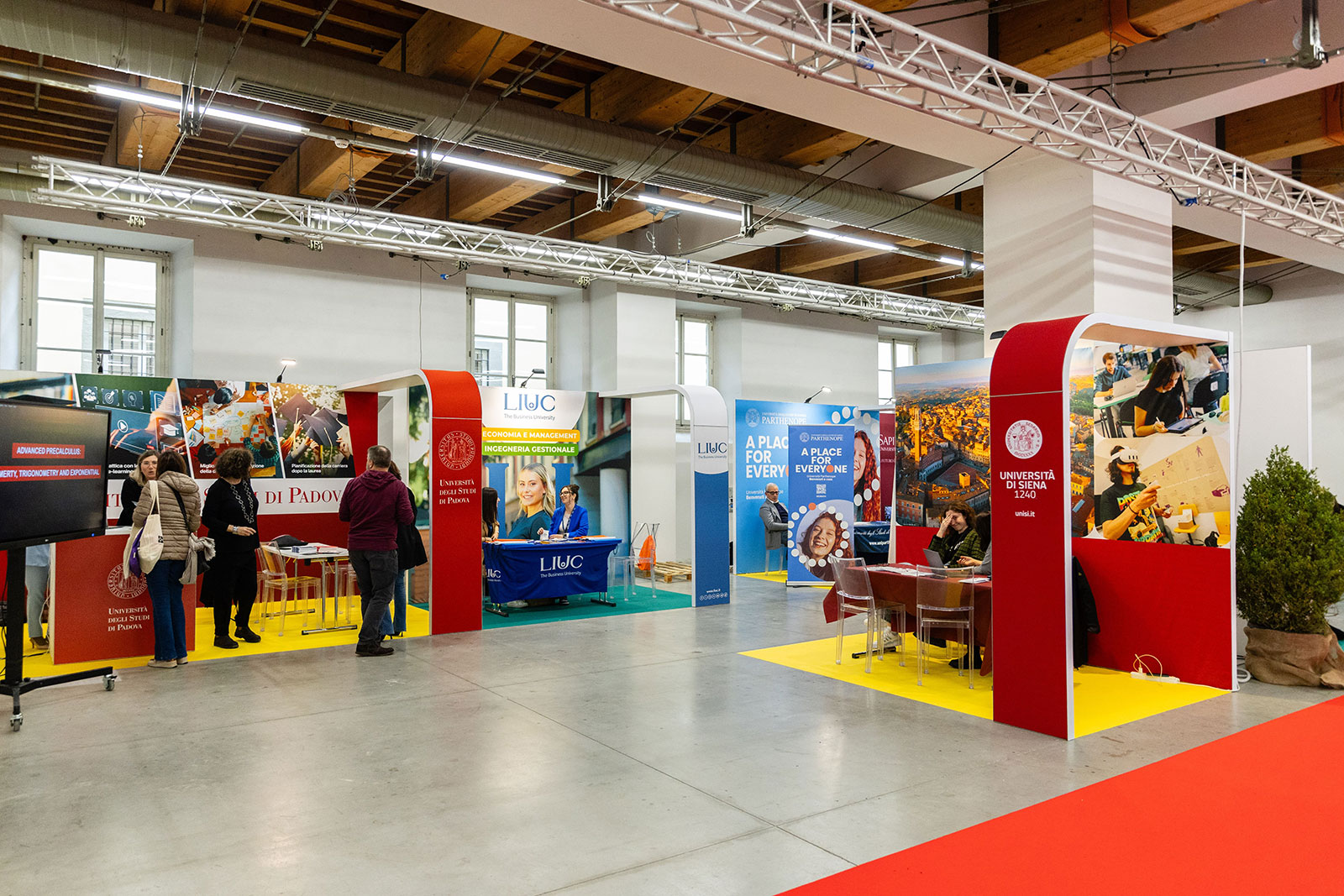 Per gli allestimenti interni, Flexus ha fornito 26 stand per le università all’interno dell’Area Arsenale e Basilica, tutti gli stand all’interno della tensostruttura, e alcuni nell’area Musica.